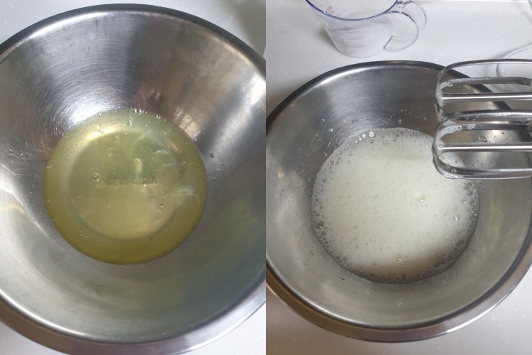 우선 흰자 자체만 거품을 내주세요.