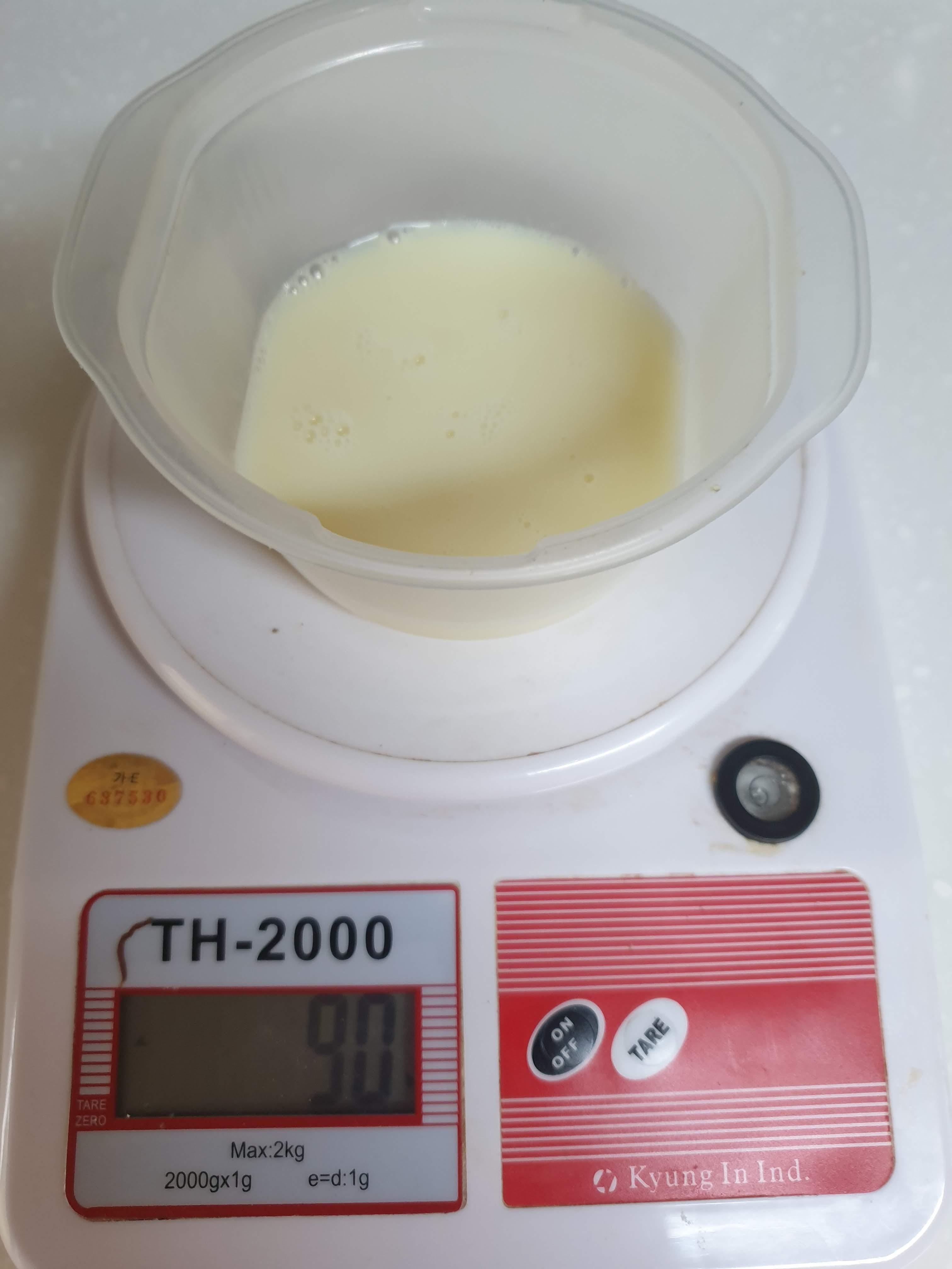 저는 우유 185ml에 설탕 50g을 넣었어요.