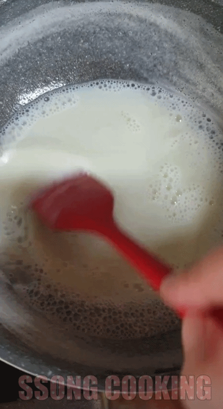 젓다 보면 우유가 끓어오르다가